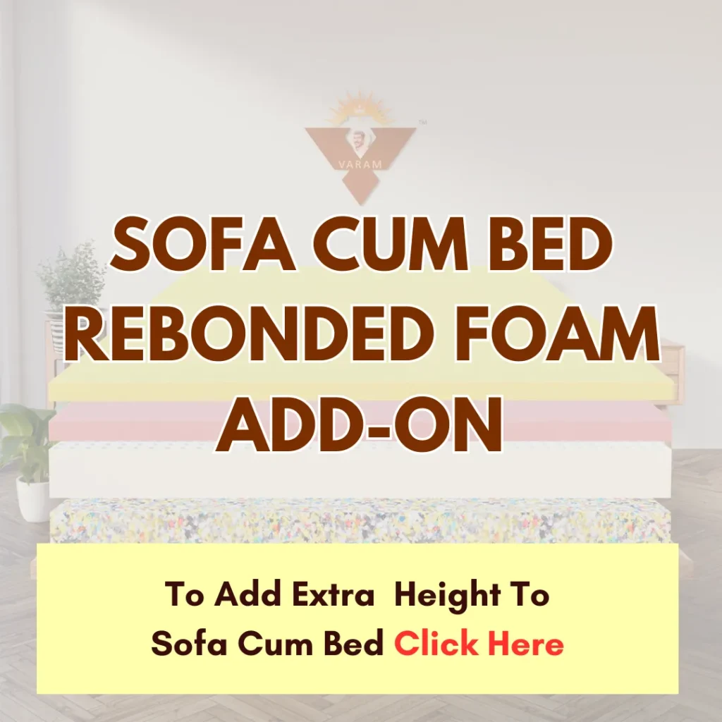 - Sofa cum bed కి height సరిపోకపోతే rebonded నీ addon చేసుకోవచ్చు లేదంటే మీ ఇంటి దగ్గర carpenter తో plywood attach చేయించవచ్చు.